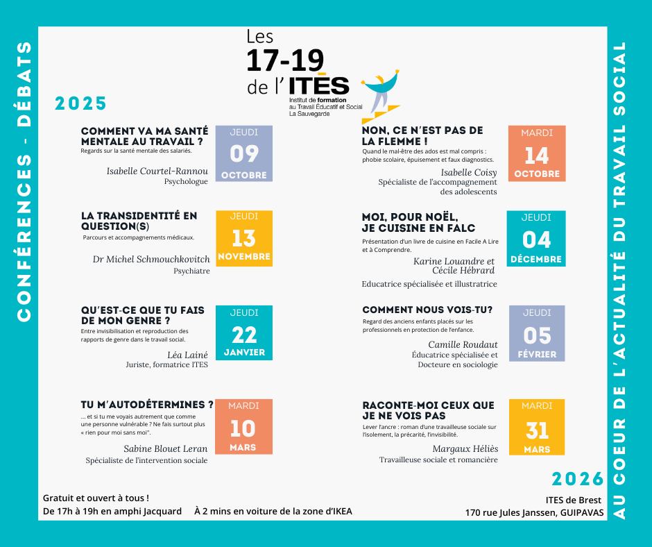 Le 14 octobre, j’aurai l’honneur et le plaisir d’animer une conférence à l’ITES de Brest sur la santé mentale des jeunes :